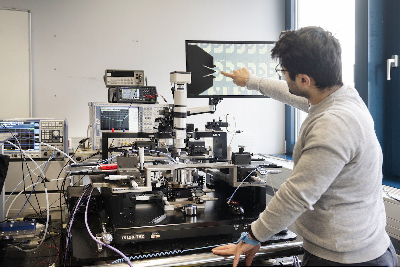 Alles aus einer Hand. Daran arbeitet Dr. Nils Weimann mit seinem Team. Der Professor für Halbleitertechnologie an der Fakultät für Ingenieurwissenschaften und Leiter der Arbeitsgruppe Bauelemente der Höchstfrequenztechnik baut mit drei Kollegen an der UDE ein deutschlandweit einmaliges Terahertz-Integrationszentrum auf. „Wir bilden mit weiteren Netzwerkpartnern vor allem aus NRW einen international anerkannten Knotenpunkt der Terahertz-Forschung.“ Ein Standortvorteil ist, dass die gesamte Technologiekette hier angesiedelt ist: von der Herstellung des Halbleitermaterials über die Fertigung der Chips bis hin zur Anfertigung der Module und der speziellen THz-Messtechnik. Dafür fließen über sieben Millionen Euro Landes- und EU-Mittel in das Zentrum für Halbleitertechnik und Optoelektronik (ZHO) nach Duisburg. „Terahertz-Wellen werden dazu beitragen, mehr Kapazität in zukünftigen mobilen Kommunikationsnetzwerken bereitzustellen – Stichwort 6G. Aber die Technik kann viel mehr als nur Hunderte von Gigabit pro Sekunde übertragen“, betont Weimann. „Sie ermöglicht es etwa, dass Roboter und Maschinen die Position von Objekten präzise bestimmen und gleichzeitig etwas über deren Materialeigenschaften erfahren können. Die schnellen Wellen haben riesiges Potenzial.“