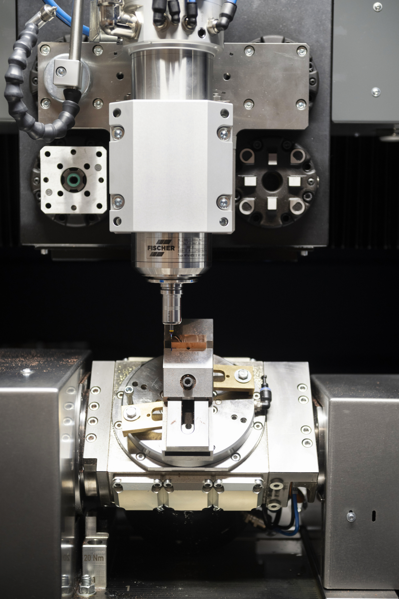 Um weitere Strecken zurückzulegen, werden spezielle Terahertz-Module mit integrierten Richtantennen benötigt (Bild 12). Derzeit kostet ein Terahertz-System so viel wie ein Luxusauto – etwa 50.000 bis 100.000 Euro – und hat die Ausmaße eines Kühlschranks. Künftig werden die Sender und Empfänger nicht nur wesentlich günstiger – nur noch einige hundert Euro-, sondern auch sehr viel energieeffizienter und um mehrere Dimensionen kleiner. In den UDE-Modulen werden die Terahertz-Wellen in Luftkanälen mit einem halben Millimeter Breite und Höhe geleitet. Die Kanäle sind auf allen Seiten mit Metall umschlossen, wie ein rechteckiges Rohr. In einem THz-Modul werden die Signale von mehreren Chips über solche Kanäle kombiniert – das bringt mehr Sendeleistung und ermöglicht auch die Richtungssteuerung der Terahertz-Strahlen, die aus dem Modul austreten. Die Kanäle werden mit hoher Präzision, auf einen Mikrometer genau, in das Metall gefräst. Dazu braucht es eine spezielle Fräse, die nicht nur State-of-the-art ist, sondern die es so auch nur an der UDE gibt (Bild 13).